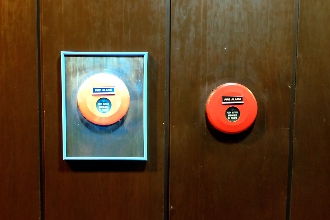 Beside Fire extinguisher and fire alarm